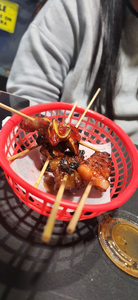 This place is not for all. This street food really hit. I'm a huge fan of intestine. The ambiance felt like I was in the backyard hanging out. Definitely needed some cards to playing with. Pretty much